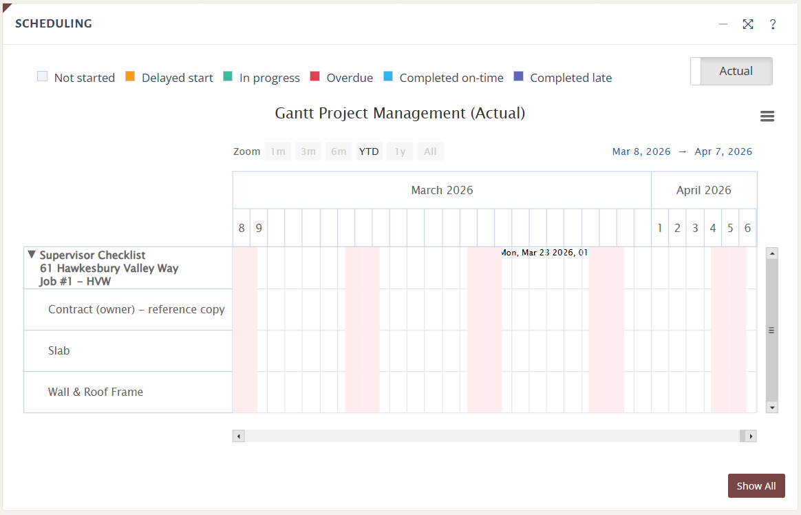 It does this by displaying jobs, estimates, quotes, and other active items on their respective buttons, organizing them into a visually descriptive timeline.