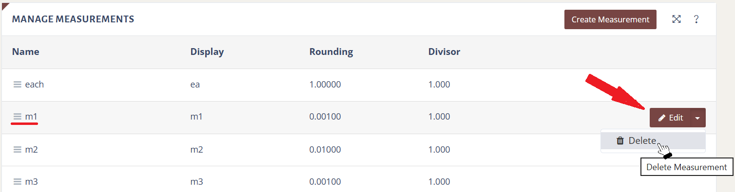 You can also edit and delete any measurement that you create in MyConstruct. However, default measurements cannot be deleted.
