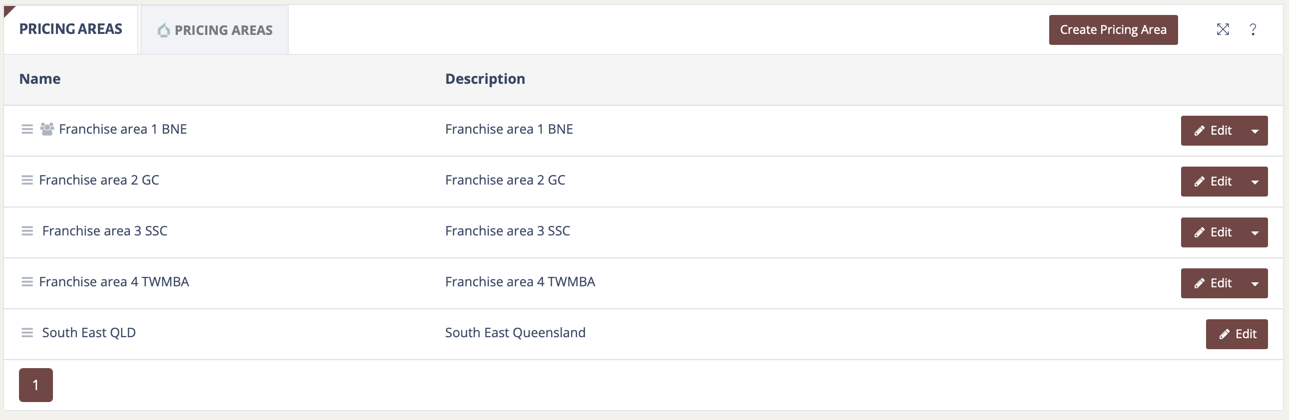 There are also option to change the sort order of Pricing Areas. Click and hold the icon shown and drag the pricing area to the desired position.