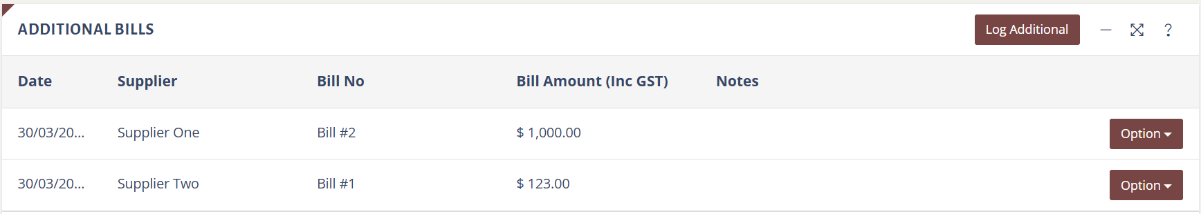 Simply click on "Log Additional" and fill in the details to add extra bills to the job. This works well for items that have been picked up from the local hardware store or weren't allowed for in the initial estimate.