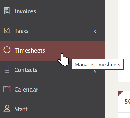 At the top of the table, you can filter by Staff and then set the Date Range of which you want to show, by default Timesheets show the last month of hours logged and default to the current user. Only managers and those with high permissions can view other staff hours.