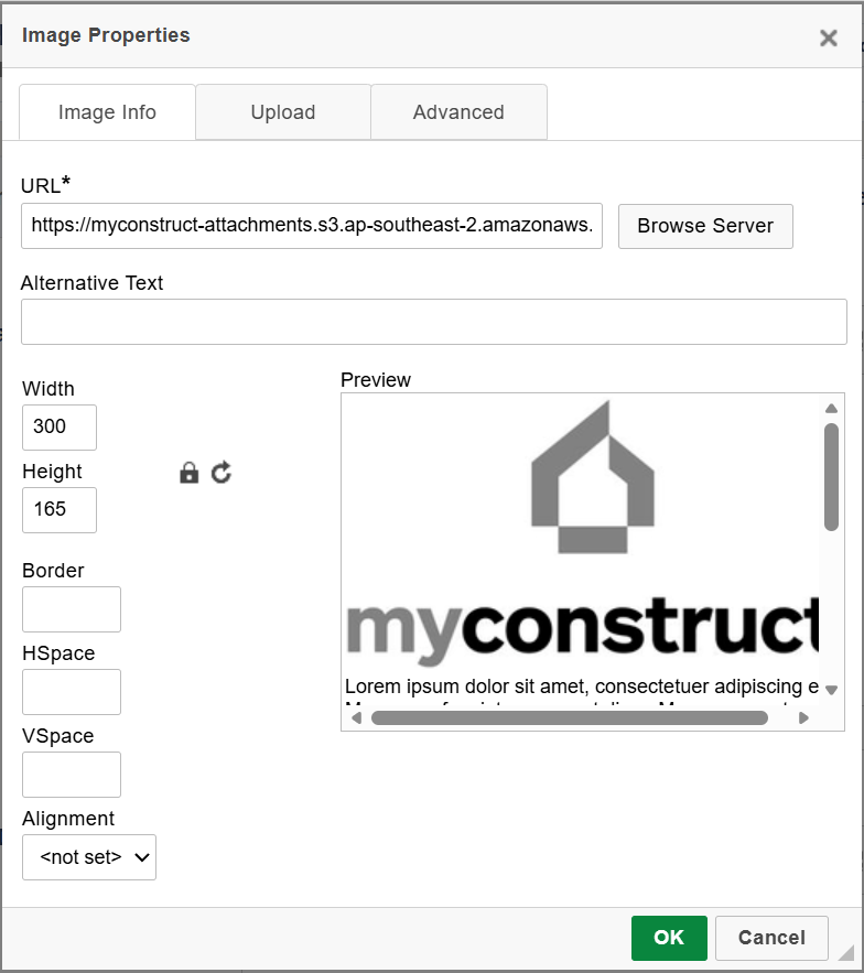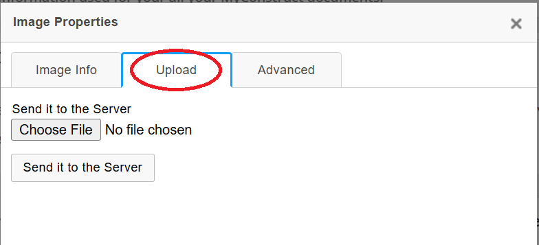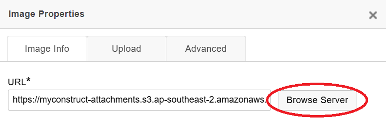 Finally, the "Browse Server" button will let you browse any files you've already uploaded to MyConstruct to be re-used as images in your text areas.