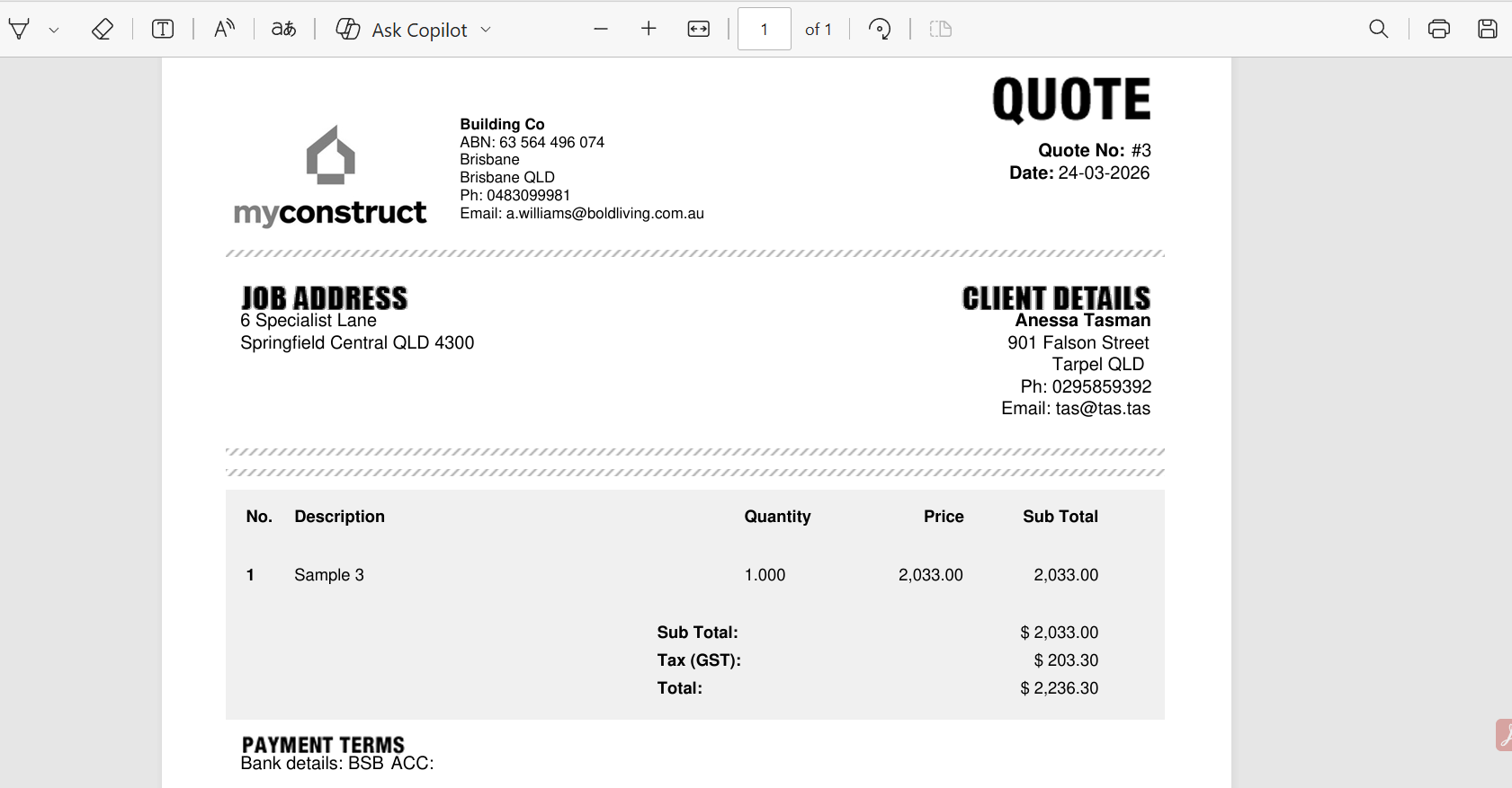 For example, I've printed my quote a couple times to make sure the sizing it right.