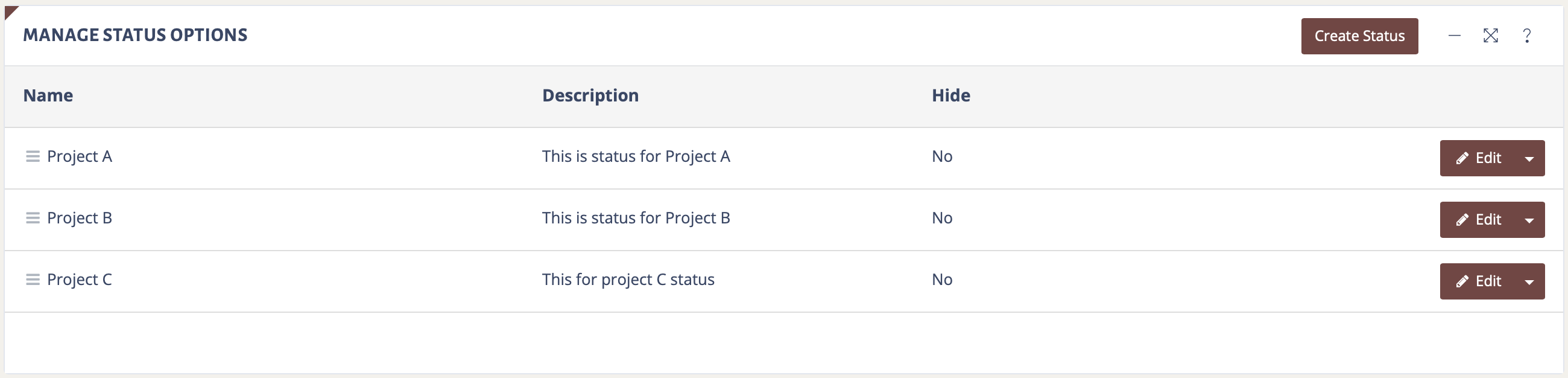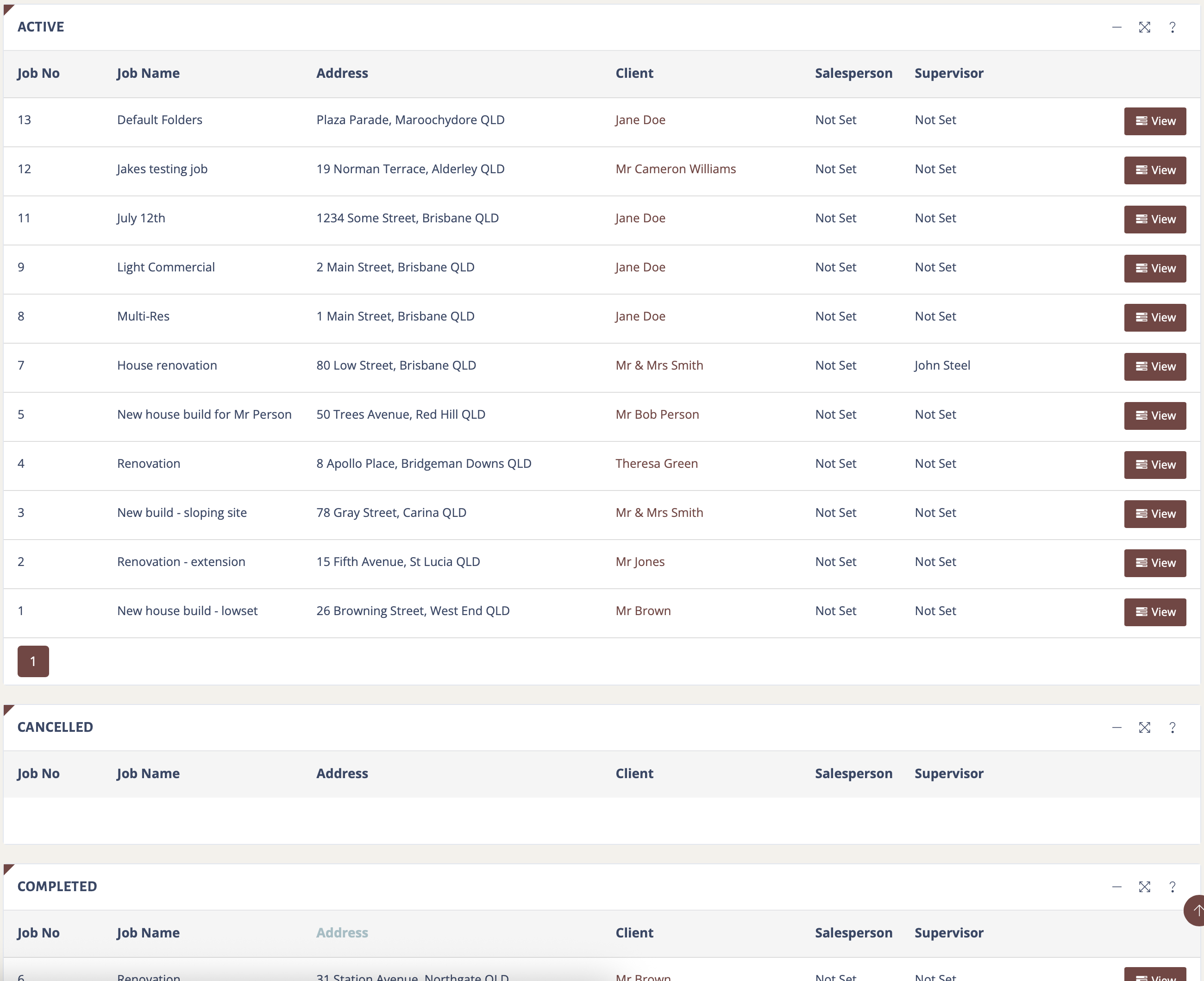 The second option is to use the 'Grouped View' that is accessible via the button in the top right or via the "Jobs" menu then "Manage Jobs: Grouped" which will show all jobs within their grouped by their 'Status' - by default MyConstruct comes with some default statuses: